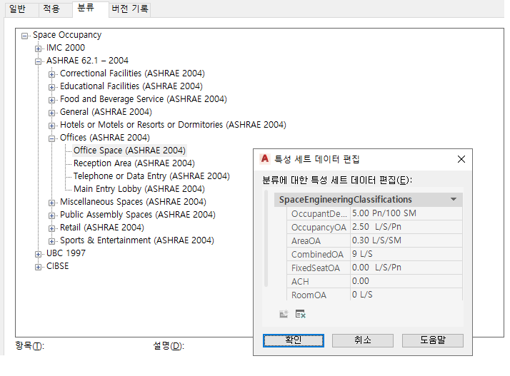 특성 세트 데이터 편집 대화상자에 분류 값이 표시됩니다.