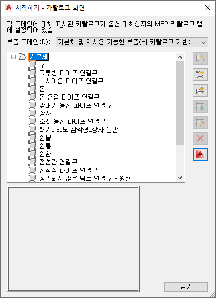 기본체에 대한 시작하기 - 카탈로그 화면 대화상자