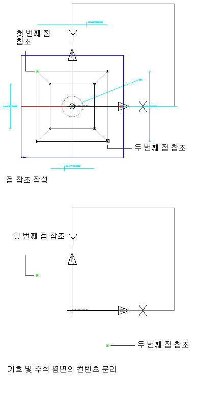 먼저 부품 크기와 함께 변경되는 모형 형상을 사용하여 기호 및 주석 평면에 점 참조와 투영된 형상을 작성합니다. 그런 다음 평면에 기호 형상을 작성합니다. 마지막으로 부품 크기가 변경될 때 기호도 그에 따라 변경되도록 구속조건 및/또는 치수를 추가합니다.