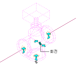 ) 회전 그립을 사용하여 객체를 해당 중심선을 기준으로 지정한 각도만큼 회전할 수 있습니다.