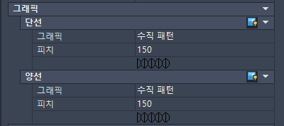 | **그래픽 | 플랙시블 덕트의 패턴을 지정합니다. 주: 자세한 내용은 플랙시블 덕트 그리기를 참고하십시오.