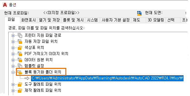 BLOCKSRECENTFOLDER - 최근에 삽입했거나 작성한 블록이 저장되는 경로를 설정합니다.