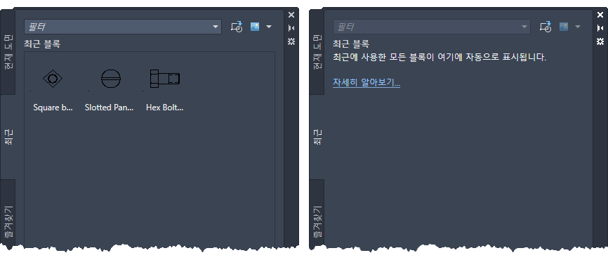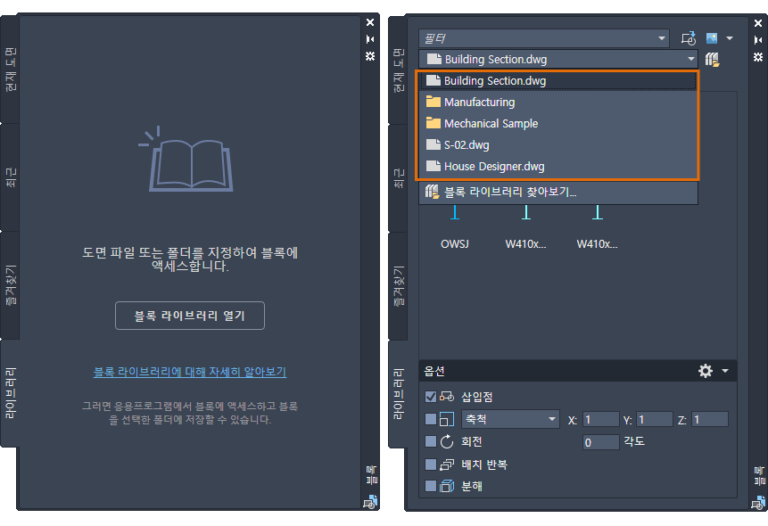 BLOCKNAVIGATE - 블록 팔레트의 라이브러리 탭에 표시되는 폴더, 파일 및 블록을 조정합니다.