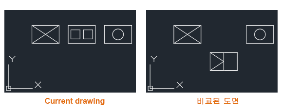 COMPAREIMPORT - 비교한 파일의 객체를 현재 도면으로 가져옵니다. 비교한 파일에 있고 현재 파일에 없는 선택한 객체만 가져옵니다.