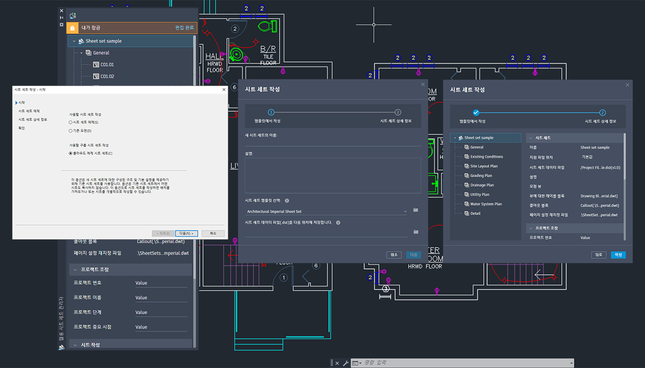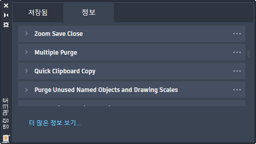 새 도면: 시작 탭의 새 드롭다운 위에 마우스를 놓으면 사용될 도면 템플릿 파일의 이름과 함께 툴팁이 표시됩니다.