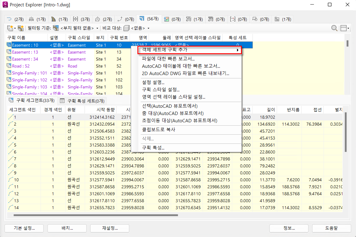 보고서 또는 스프레드시트를 생성하는 새 객체 세트를 작성하려면 Project Explorer 윈도우의 객체 리스트 창에서 하나 이상의 객체를 선택하고 마우스 오른쪽 버튼 클릭 메뉴에서 객체 세트에 추가