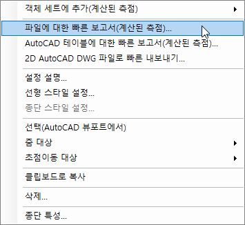 빠른 보고서 작성 윈도우를 열려면 Project Explorer 윈도우의 객체 리스트 창에서 하나 이상의 객체를 선택하고 마우스 오른쪽 버튼 클릭 메뉴에서 파일로 빠르게 보고 옵션 중 하나를 선택합니다.