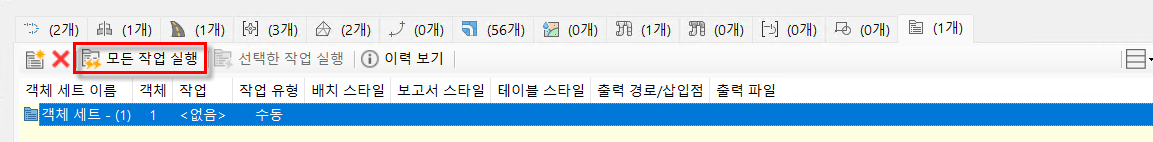 - 모든 작업 실행 버튼을 클릭합니다. 이렇게 하면 관망과 코리더에 적용한 최신 설계 변경 사항으로 두 보고서가 모두 업데이트됩니다.