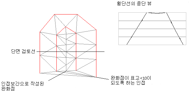 이 명령은 지표면에 등고 자료를 추가한 후에 나타나는 평평한 면적의 수를 줄입니다. 이를 통해 실제 지표면을 사실적으로 반영하는 보다 나은 지표면 모형을 작성할 수 있습니다.