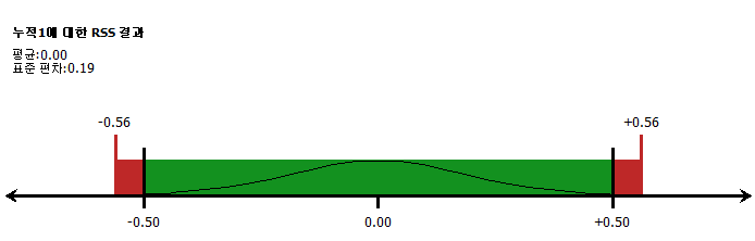 RSS 결과 그래프의 위에는 RSS 구성요소에 대해 계산된 평균 및 표준 편차 매개변수가 표시됩니다. 또한 분석의 통계적 특성을 나타내는 법선 곡선도 표시됩니다.