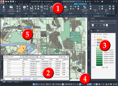 AutoCAD Map 3D 도구 세트 제품 윈도우의 기본 요소