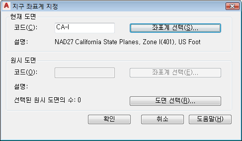 지도의 적절한 좌표계를 입력하거나 선택할 수 있습니다.