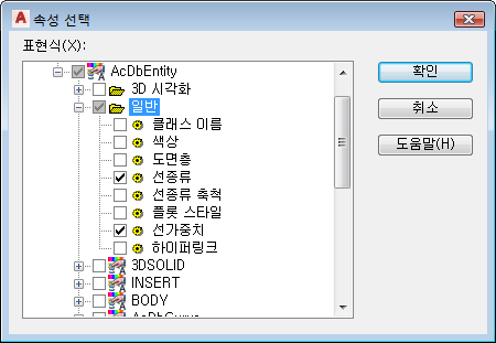 상위 항목을 확장하여 특성의 하위 세트를 선택합니다.