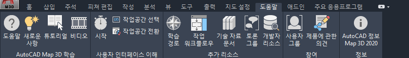 - 도움말: AutoCAD Map 3D 도구 세트의 모든 것을 망라하는 개념 및 절차를 찾거나 검색할 수 있습니다.