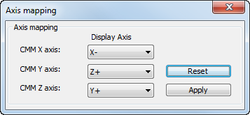 다음 예에서는 파트의 Y축이 CMM의 Z축과 정렬되고, 파트의 Z축이 CMM의 Y축과 정렬되며, 파트의 X축은 CMM X축과 반대 방향으로 정렬됩니다.