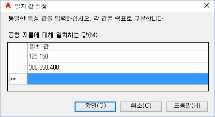 영국식 값과 미터법 값을 일치시키려면 첫 번째 값을 영국식으로 지정하고 두 번째 값을 미터법으로 지정합니다. 예를 들어, 크기에 대해 4,100을 지정하고, 압력 클래스에 대해 150,10PN을 지정합니다.