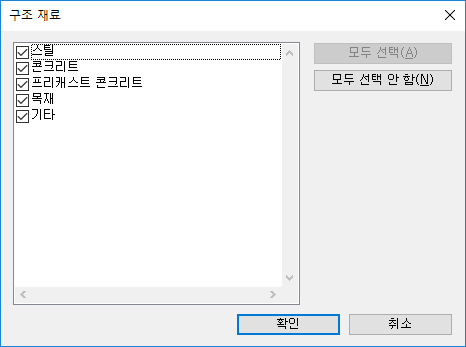 표시할 각 재료를 선택한 후 확인을 클릭합니다. 기본적으로 모두 선택되어 있습니다.