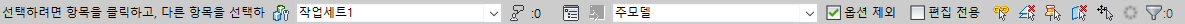 상태 막대에서 작업 세트 또는 설계 옵션 컨트롤만 숨기려면 해당 확인란을 선택 취소합니다.