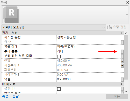 특성 팔레트에서 부하 분류 값의 오른쪽에 있는 버튼을 클릭합니다.