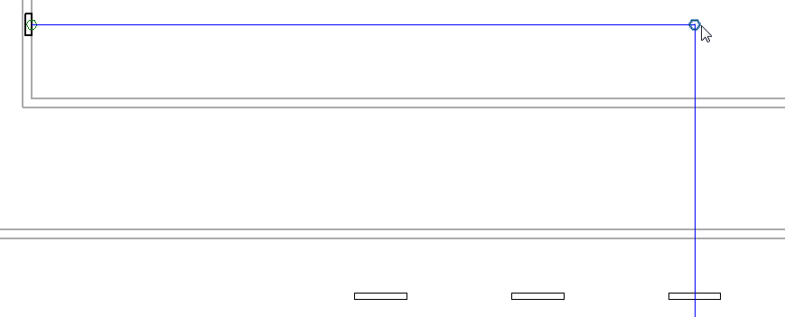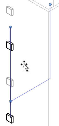 - 평면 뷰에서 위로 마우스 포인터를 회로 경로의 수직 세그먼트 위로 이동하여 챌판에 대한 제어점을 표시합니다.