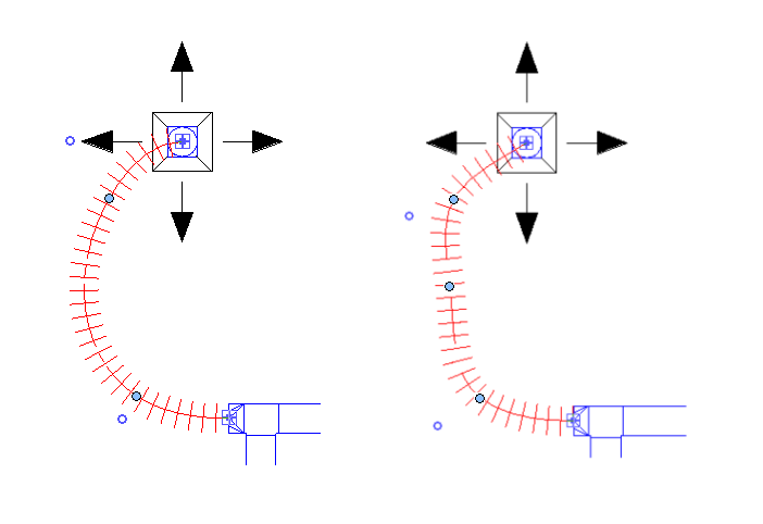 정점 및 접선 컨트롤을 끌어 덕트의 라우팅을 변경합니다.