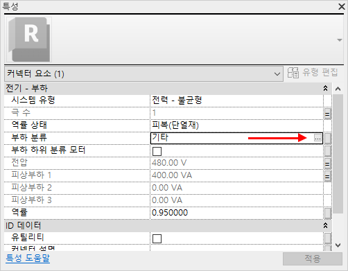 특성 팔레트에서 부하 분류 값을 클릭한 후 표시되는