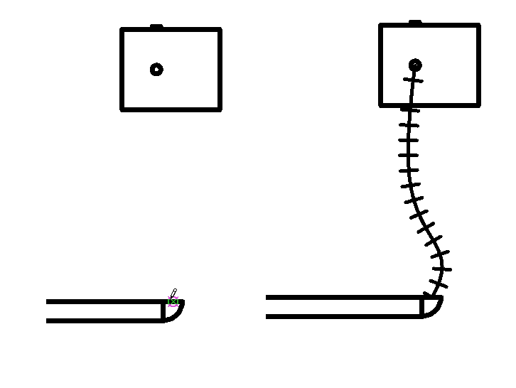 플렉시블 배관이 은선 뷰에 중심선과 함께 표시됩니다. 배관 부속류의 경우 패밀리를 편집하고, 모델 선을 추가하며 하위카테고리를 중심선으로 설정하여 기본 중심선을 재지정할 수 있습니다.