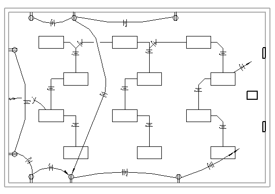 다음 예에서는 호 배선으로 리셉터클을 연결하고, 모따기된 배선으로 조명 설비를 연결합니다. 패널에 대한 연결을 나타내도록 귀로가 자동으로 추가됩니다.