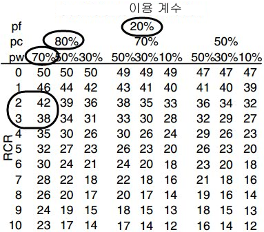 이 예의 경우: RCR = 2.5 * 6.5 * 100 / 600 = 2.708.