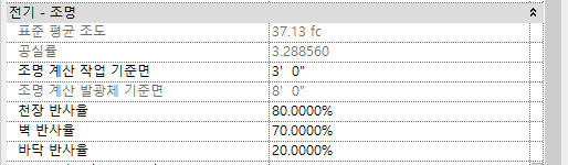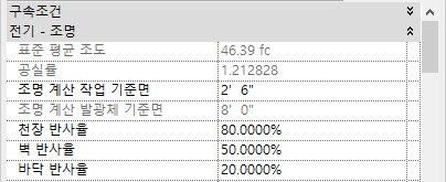 공간에 대한 표준 평균 조도를 계산하는 데 사용된 추가 수식은 다음과 같습니다.