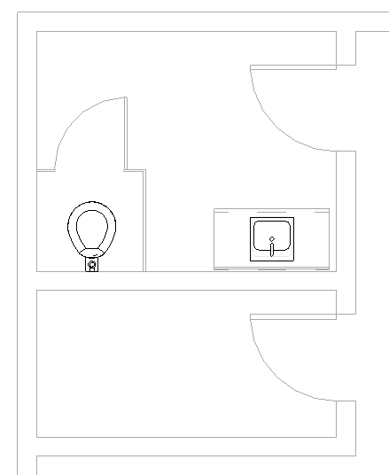 다음 항목의 예는 가정용 온수 시스템, 가정용 냉수 시스템 및 싱크대 및 화장실용 위생 시스템을 작성하는 데 사용된 단계를 나타냅니다. 화장실, 케이스워크 및 싱크대가 이미 평면에 배치되었습니다.