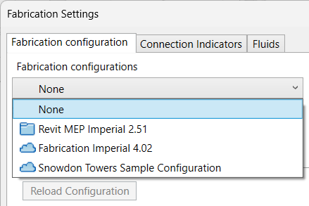 - Autodesk Fabrication 제품(CADmep, ESTmep 및 CAMduct) 중 하나에서 구성이 수정된 현재 모델에 사용된 서비스를 업데이트하려면 구성 다시 로드를 클릭합니다.