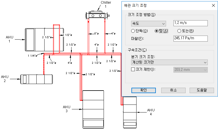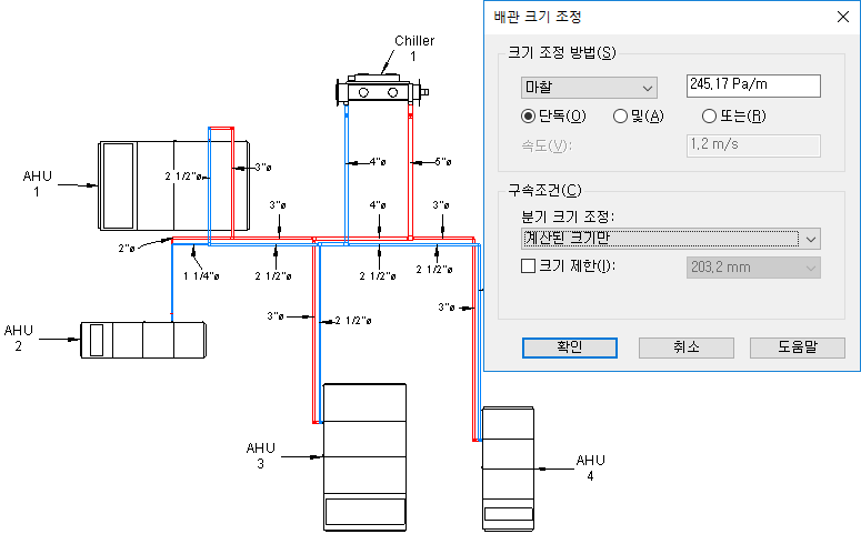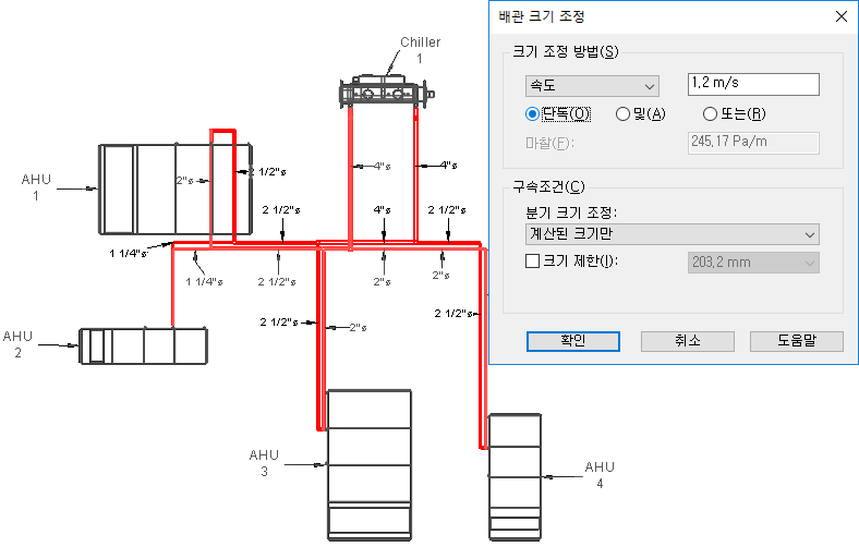 다음 이미지는 다양한 순환수 파이프 크기 조정 방법의 결과를 나타냅니다.