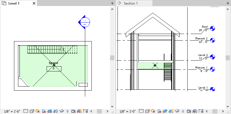 팁: 입면도를 작성하여 레벨을 작성할 수 있지만 공간은 입면도에 표시되지 않습니다.