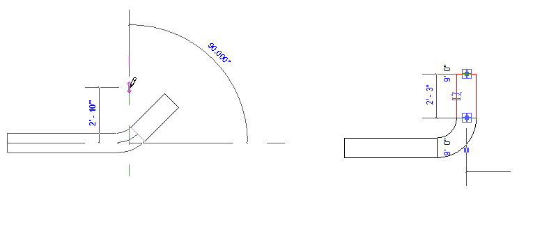 덕트는 평면 뷰에서 그려야 하지만, 덕트가 다리에 연결되면 원하는 뷰(평면 뷰, 입면 뷰, 단면 뷰 또는 3D 뷰)에서 각도를 조정할 수 있습니다.