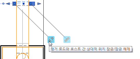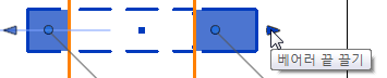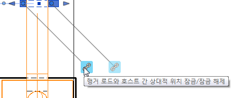 제작 행거를 선택하면 도면 영역의 컨트롤을 사용하여 행거 베어러의 위치를 수정할 수 있습니다.