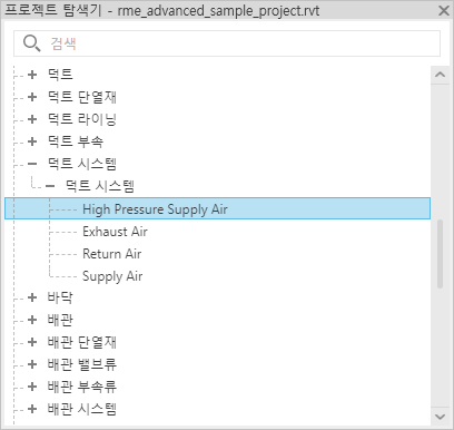 기존 시스템 유형을 복제하여 새 덕트 또는 파이프 시스템을 작성할 수 있습니다. 시스템 유형을 복제할 때 새 시스템 유형은 동일한 시스템 분류를 사용합니다. 그런 다음 원래 시스템 유형 또는 인스턴스에 영향을 미치지 않고 중복 사항을 수정할 수 있습니다.