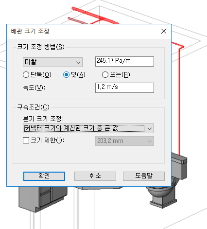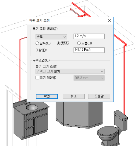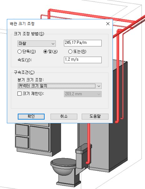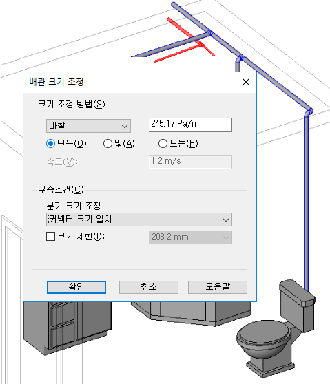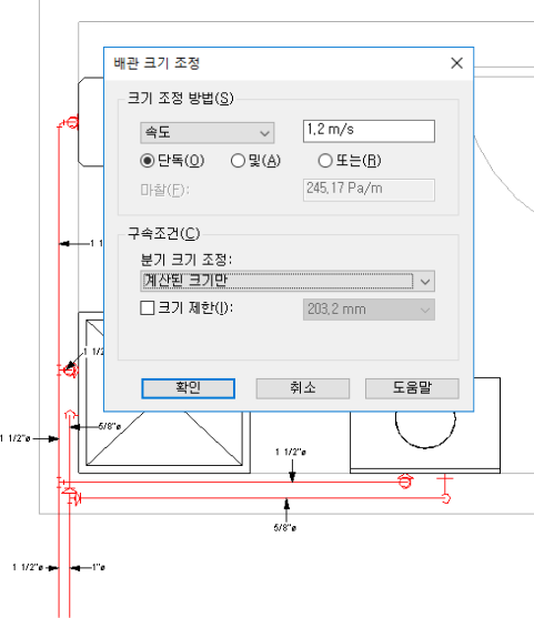 파이프 크기 조정 예