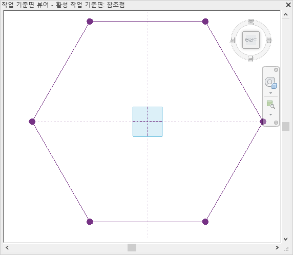 작업 기준면 뷰어는 프로젝트 환경의 모든 모델 뷰에서 사용할 수 있습니다. 기본 방향은 마지막 활성 뷰의 활성 작업 기준면입니다.