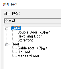 2. 설계 옵션 대화상자의 왼쪽 리스트에서 옵션을 추가할 설계 옵션 세트를 선택합니다.