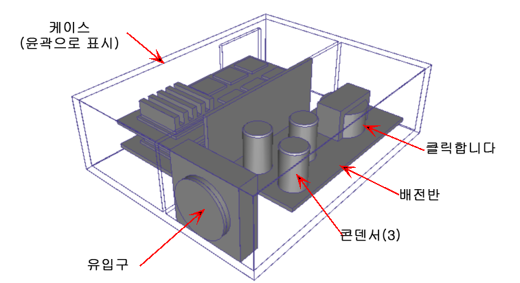 이 튜토리얼에서는 전자 엔클로저 내의 흐름 및 열 전달을 시뮬레이션합니다. 이 시스템에는 여러 구성요소가 포함되어 있으며 이러한 구성요소를 압축 열 모형, 내부 팬 및 분산 저항(통기성 매체)과 같은 Autodesk® CFD 재질 장치 모형을 사용하여 모델링합니다.