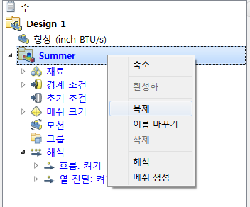앞서 설명한 것처럼 Upfront CFD는 여러 설계 반복을 통해 발전된 최신 제품입니다. 지금까지 하지 시나리오 설정 프로세스를 진행했습니다. 하지 시나리오를 작성하기 위한 작업을 반복해서 수행할 필요 없이, 하지 시나리오를 복제하고 다른 설정만 변경하게 됩니다.