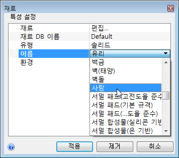 3. 재료 빠른 편집 대화상자에서 재료 유형을 선택합니다.