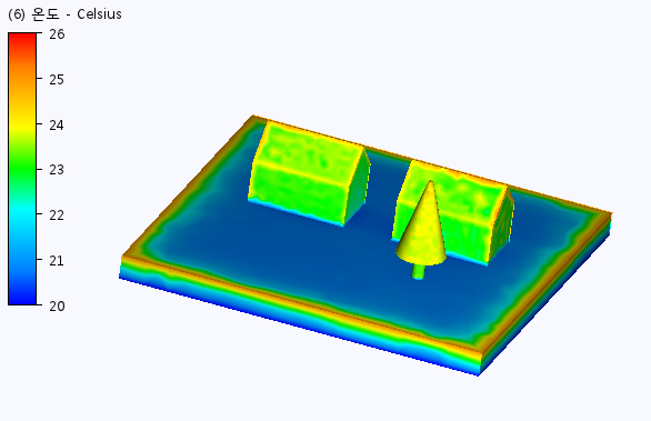 이 단계에서는 온도 및 태양열 플럭스를 검사하여 환경의 태양열 효과를 이해합니다. 주택과 나무에 의한 그림자 투영을 볼 수 있어야 합니다.