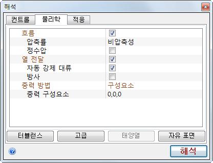 참고: 자동 강제 대류를 사용하면 해석은 두 단계로 자동 실행됩니다. 첫 번째 단계는 흐름 전용(열 전달 없음)입니다. 두 번째 단계는 열 전달 전용으로 해석을 진행한 다음 최대 100번 반복을 추가로 실행합니다.