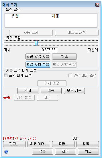 메쉬 크기를 수정하려면 다음 중 하나를 수행합니다.