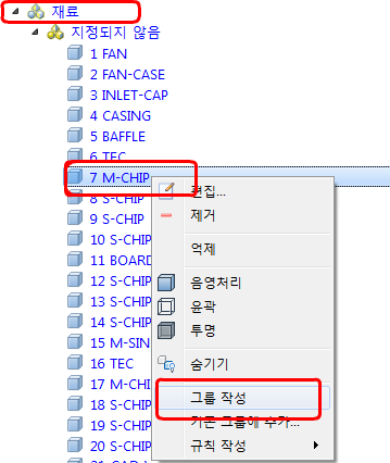 리스트의 다른 M-CHIP 부품을 마우스 오른쪽 버튼으로 클릭하고 추가 기존에 그룹를 클릭합니다.