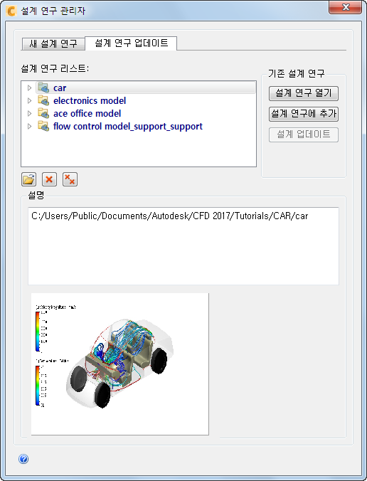 3. 설계 연구 리스트에서 설계 연구를 선택합니다.