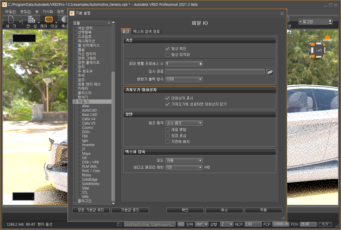 가져오기, 기본 설정, 테셀레이션 설정, 자동 재질 할당, 배치 변환, 메타데이터 등에 대한 추가 지침 컨텐츠는 데이터 준비 섹션을 참조하십시오.