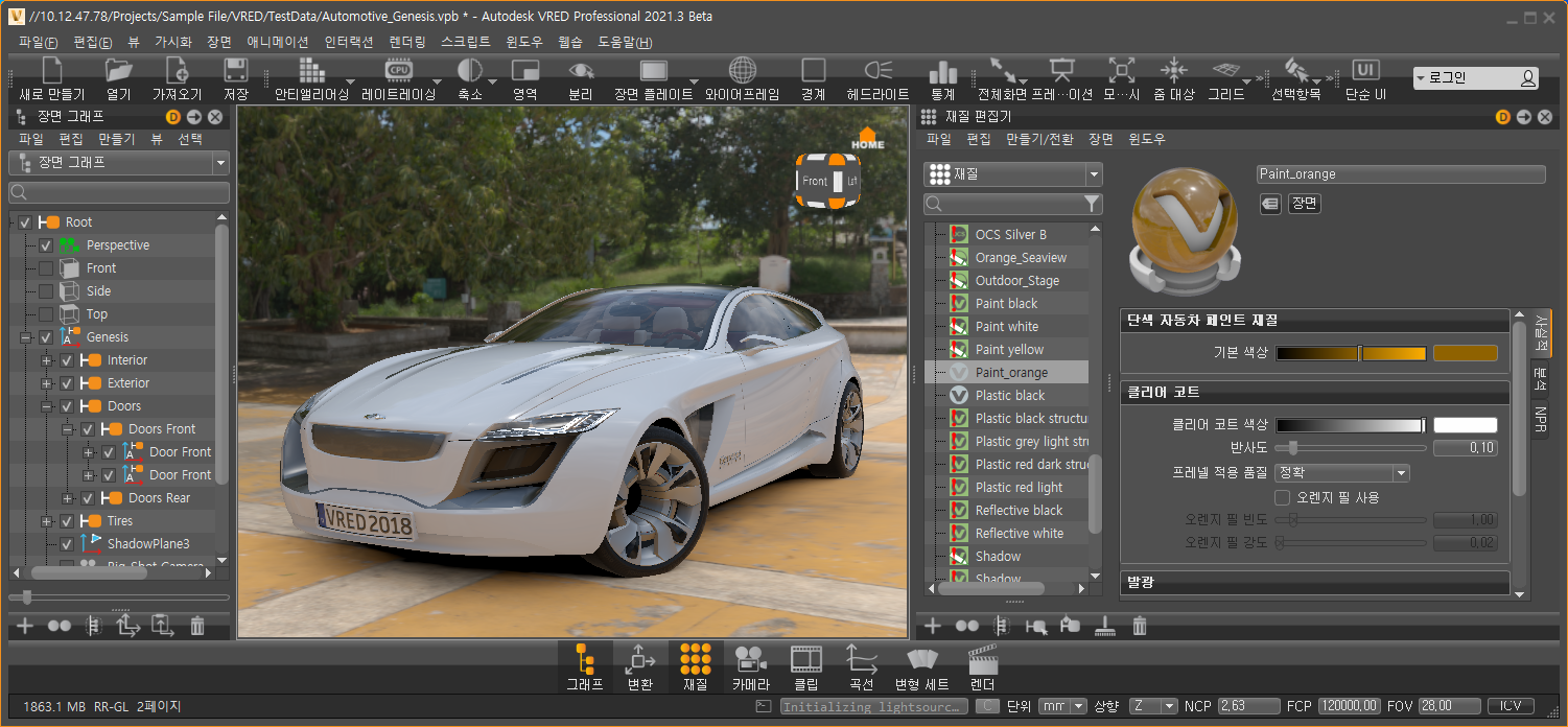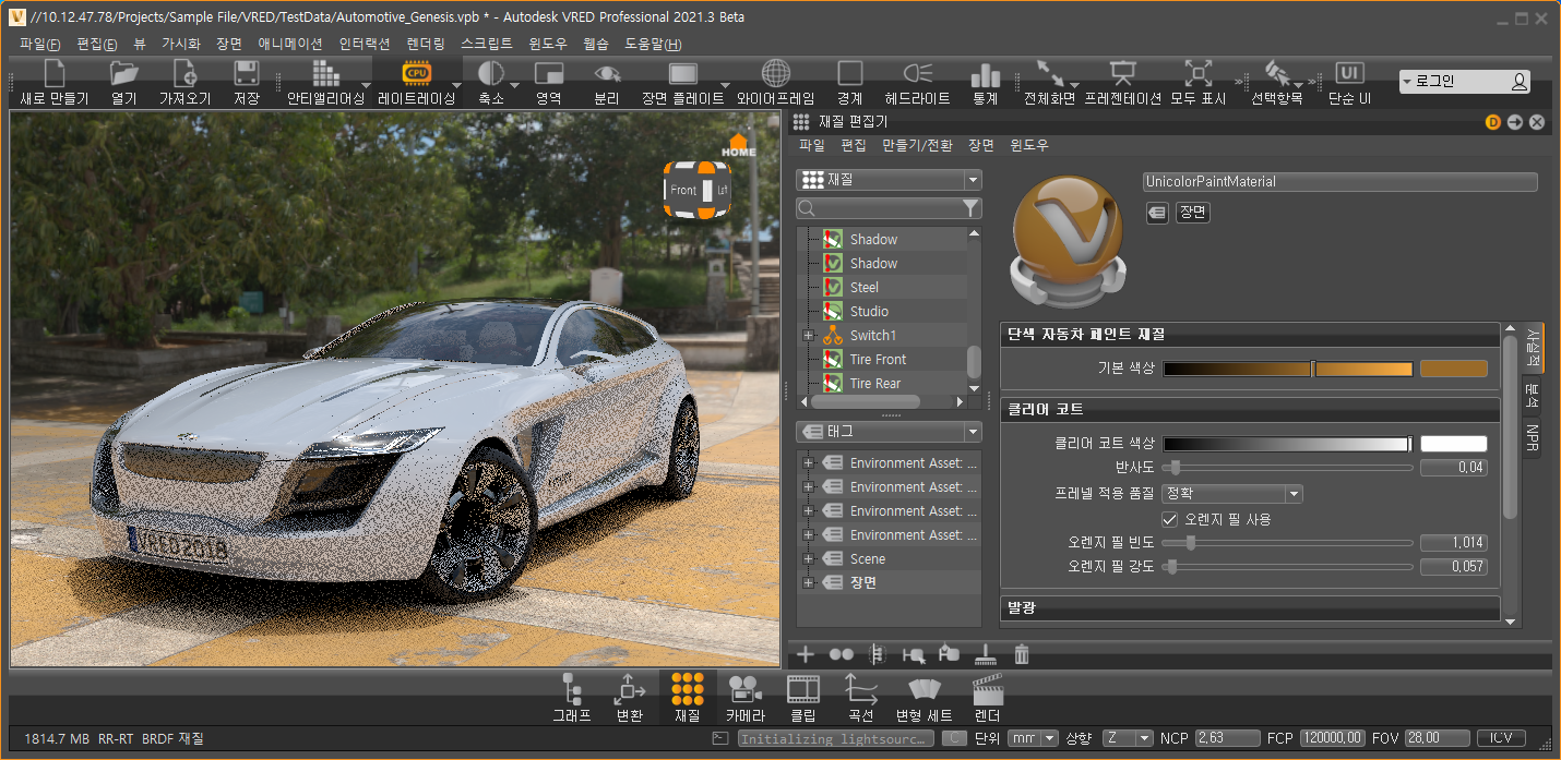 VRED의 단색 자동차 페인트 재질에 대해 알아봅니다.